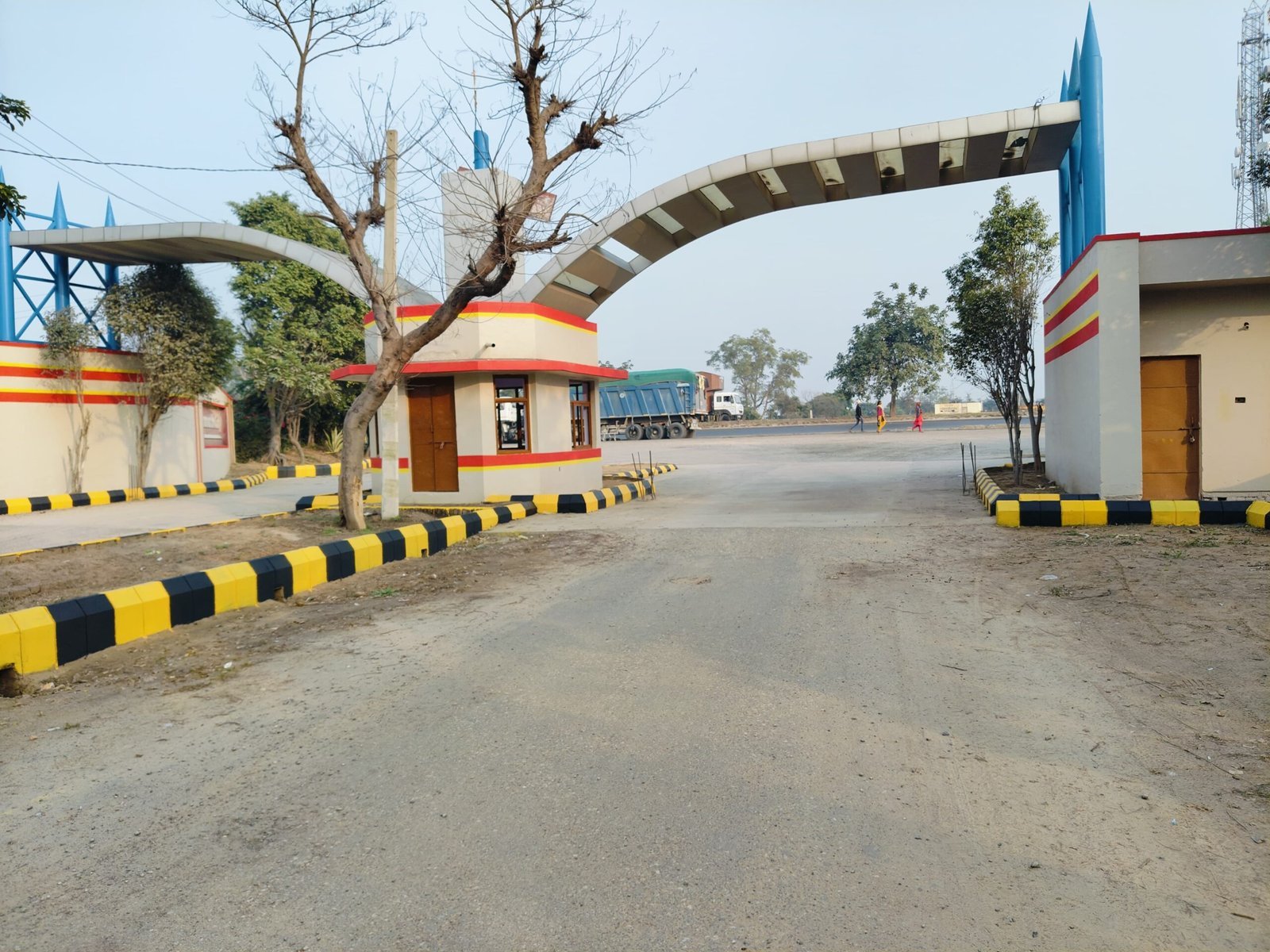 Gated community with boundary walls and provisions for security personnel.